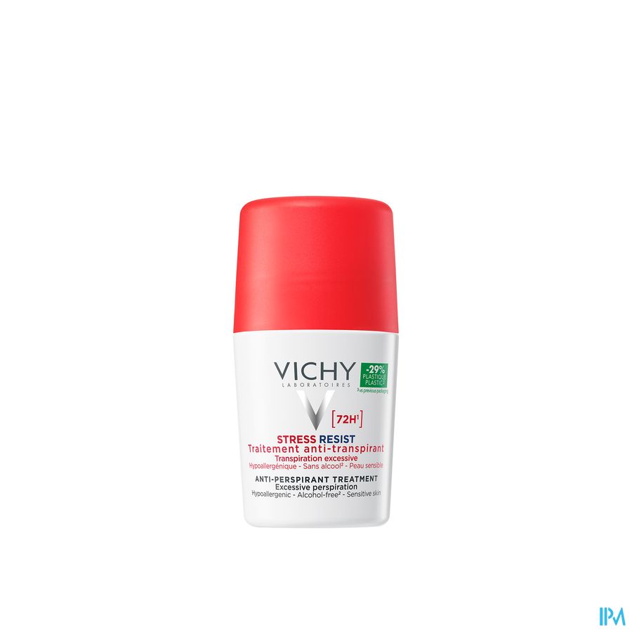 Le Détranspirant Intensif Stress Resist 72h de Vichy est un déodorant roll-on efficace qui régule la chaleur et les odeurs, même en situation de stress. Sa formule hypoallergénique, à la tolérance optimale, a été testée sous contrôle dermatologique et ne contient pas d'alcool*, une composition idéale pour les peaux sensibles. Le format roll-on avec un applicateur optimisé permet un meilleur contact avec la peau. Bénéficiez d'une protection intense contre la transpiration et les mauvaises odeurs jusqu'à 72 heures avec Vichy Détranspirant Intensif Stress Resist 72h. Vichy Détranspirant Intensif Stress Resist 72h est un traitement anti-transpirant qui aide à réguler la transpiration excessive, même lors de périodes de stress. La texture non grasse et non collante protège efficacement contre la transpiration et réduit les sensations d'inconfort, même en période de stress. Appliquez quotidiennement pour une protection idéale, grâce à laquelle vous vous sentirez en sécurité tout au long de la journée.