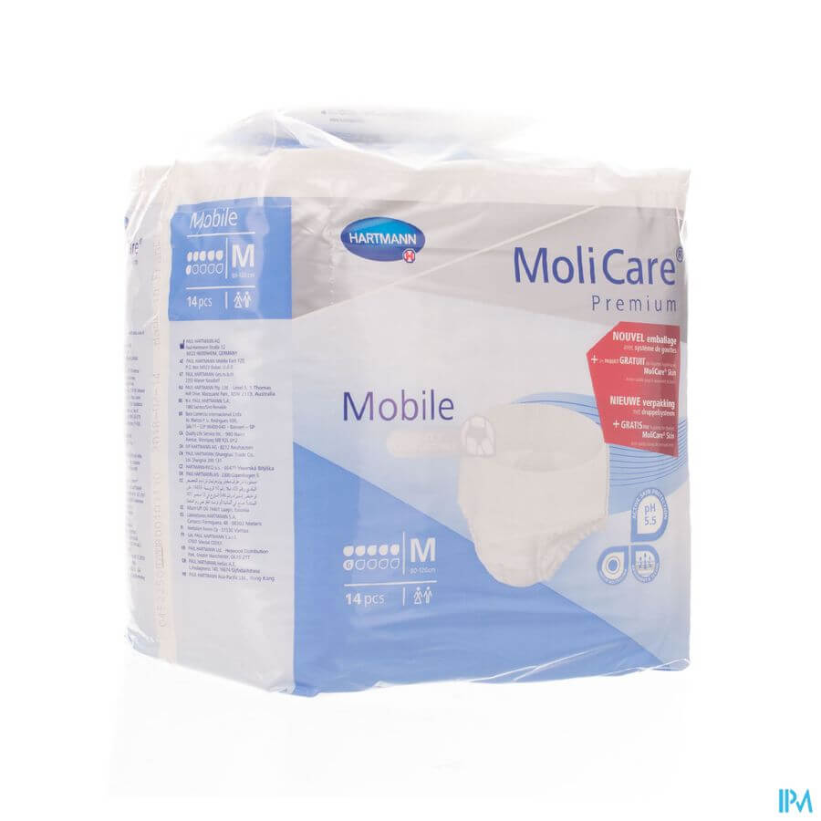 Slips d'incontinence qui se mettent et s'enlèvent comme des sous-vêtements ordinaires, Avec une protection antibactérienne, de pH neutre pour la peau, un coussin absorbant en 3 couches qui neutralise les odeurs. Indicateur de saturation pour indiquer le moment optimal du remplacement. Couverture totale en non-tissé, barrières anti-fuites hydrophobes, forme anatomique avec fermeture élastique aux jambes. Extérieur imperméable de genre textile, offre une protection parfaite et un confort fiable avec 'ideal-fit', grâce à un modèle anatomique optimalisé et des matériaux particulièrement doux, testés en dermatologie. Idéal pour des personnes mobiles.