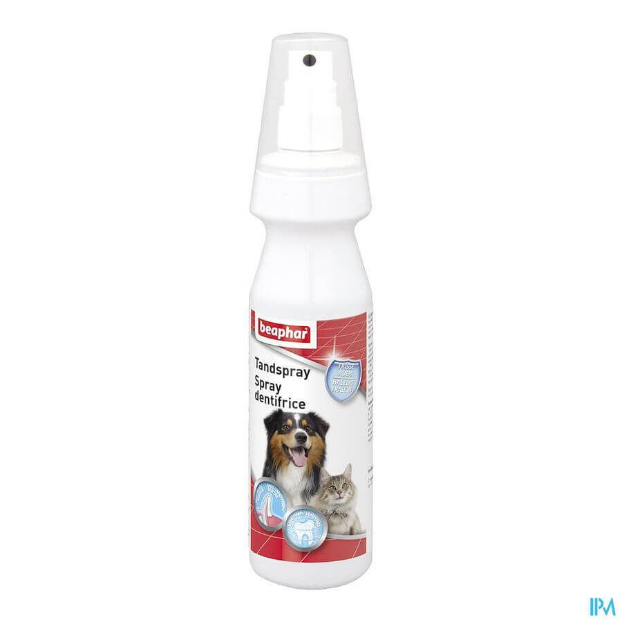 Beaphar spray dentaire, le moyen simple de nettoyer les dents de votre chien ou chat sans brosse. Le spray prévient la formation de plaque dentaire et de tartre et assure une haleine fraîche. Le spray contient des minéraux qui empêchent la formation de tartre.
