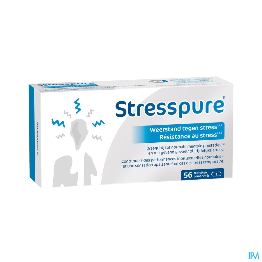 Stresspure Comp 56 est un complément alimentaire disponible en pharmacie. Il ne peut se substituer à un mode de vie sain et à une alimentation variée et équilibrée. Ne prenez pas plus que la dose quotidienne recommandée indiquée sur l'emballage. Demandez conseil à votre pharmacien. Tenir hors de portée des enfants.